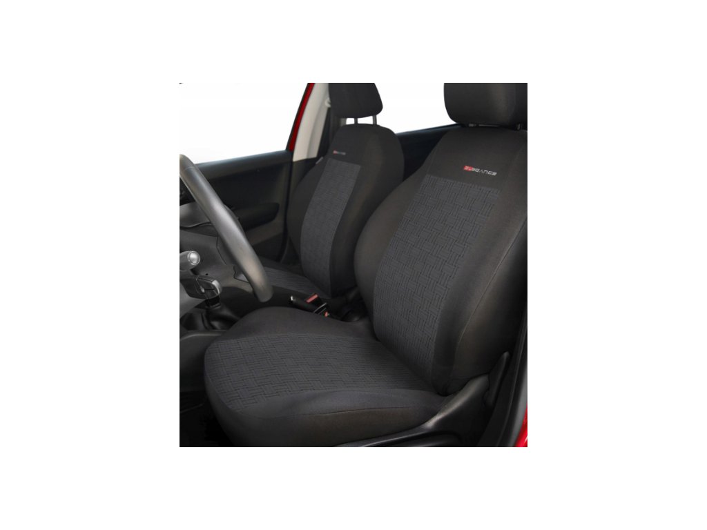 - první řada: 2 potahy na přední sedadla, 2 opěrky hlavy