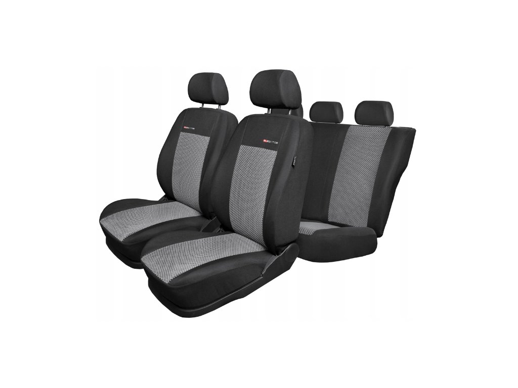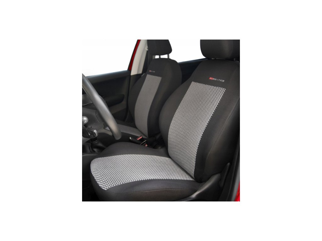- první řada: 2 potahy na přední sedadla, 2 opěrky hlavy,