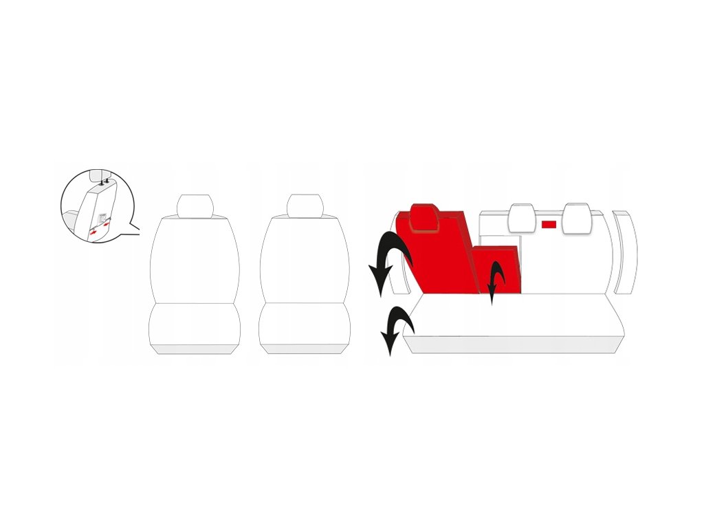- první řada: 2 potahy na přední sedadla, 2 opěrky hlavy, kapsy v obou sedadlech