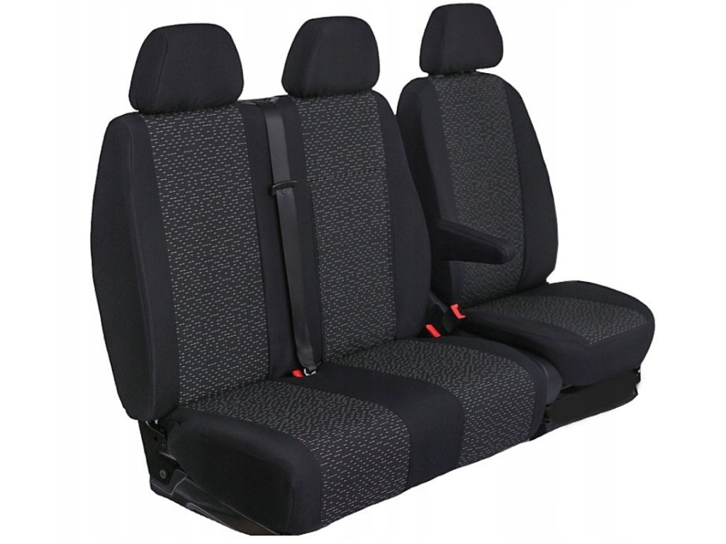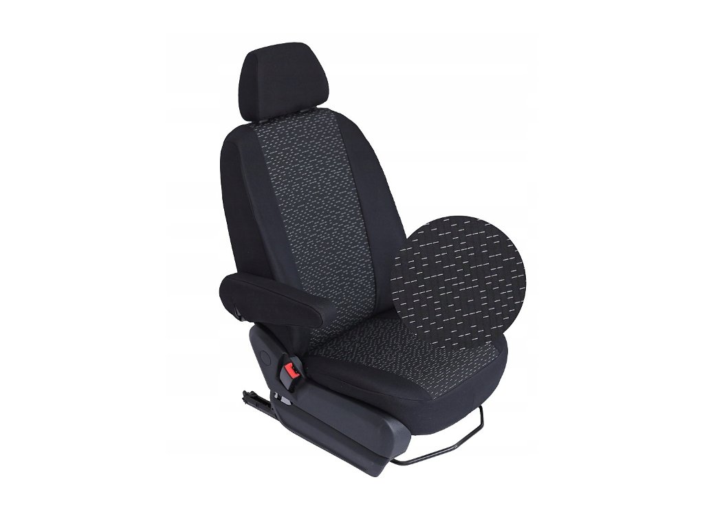 - v přední řadě - Potah na sedadlo řidiče plus opěrku hlavy plus potah loketní opěrky.; Potah pro dvojité sedadlo spolujezdce s otvory pro pásy plus opěrky hlavy;