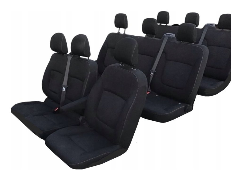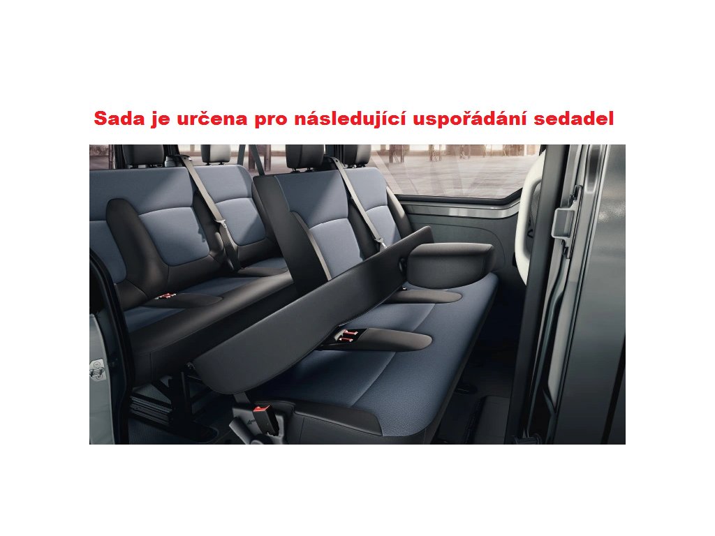 - druhá řada -Potah na trojité sedadlo s vyříznutými otvory pro pásy; Potah na opěradla se sklopnou částí umožňující průchod k zádům plus opěrky hlavy;