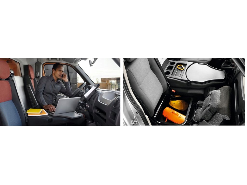 - dvojité sedadlo dělené s přístupem do skříněk + standardní sedadlo řidiče
