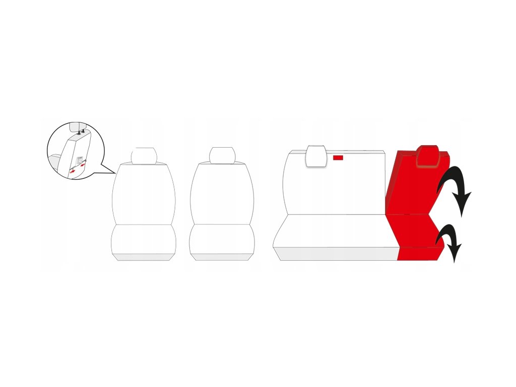 - první řada: 2 potahy na přední sedadla, 2 opěrky hlavy, kapsy v obou sedadlech