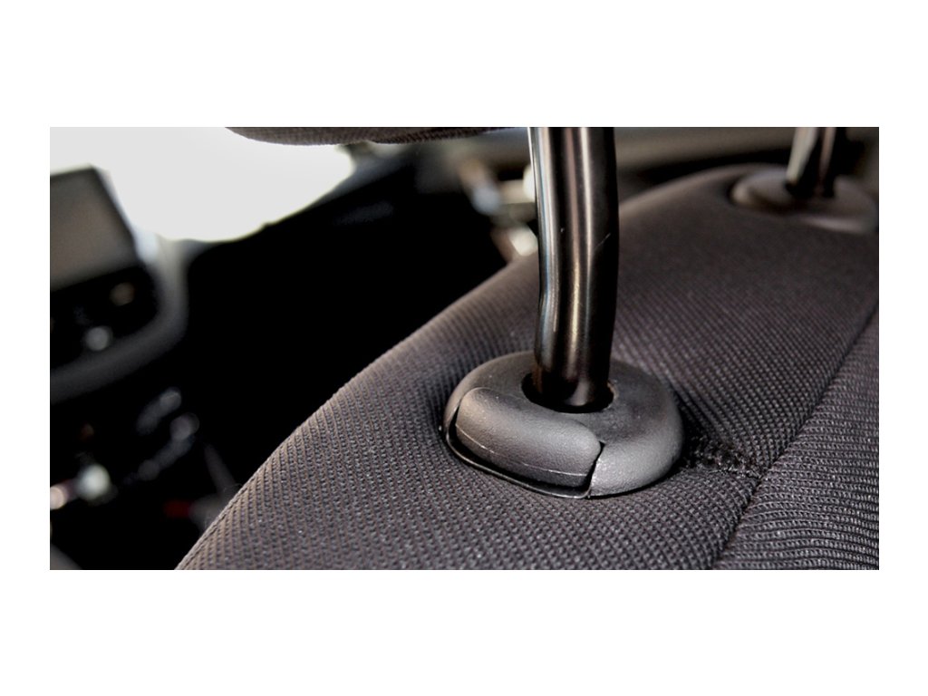 - první řada: 2 potahy na přední sedadla, 2 opěrky hlavy, kapsa v sedadle spolujezdce
