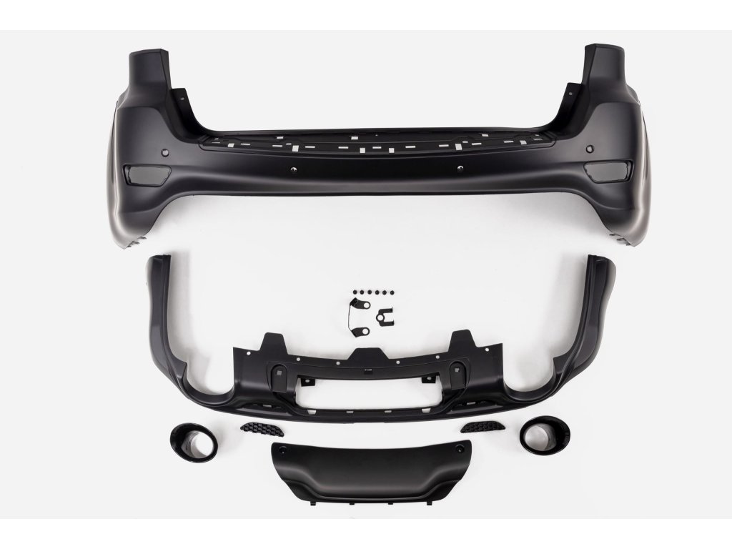 - Zadní nárazník - stylizovaný podle čísla dílu OEM: 68335451AB. Sada obsahuje nárazník s difuzorem/spoilerem, koncovky, dvě koncovky výfuku a emblémy pro zadní poklop.