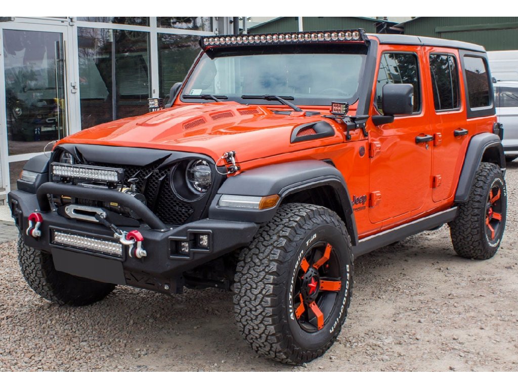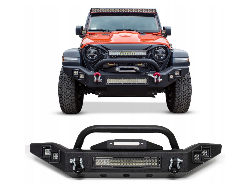 Přední nárazník "LP" navržený automobilovými nadšenci z Kalifornie – společností Paramount Automotive pro JEEP WRANGLER JL 2018+. Nárazníky Paramount, odolné vůči všemu, co se jim postaví do cesty, jsou opravdovou lahůdkou pro nadšence off-roadu a stylového designu. Nabízený model je vybaven robustními držáky na šekle, které jsou součástí balení. Nárazník obsahuje prostor pro instalaci navijáku s nosností až 5500 kg s použitím syntetického lana. Dále je vybaven přídavným dvojitým off-road osvětlením a světelnou lištou 40LED s výkonem 120 W. Ochranná trubka přední mřížky Wranglera má dva držáky pro montáž dalšího osvětlení. Nárazník je vyroben z oceli válcované za studena o tloušťce 4 mm, trubky o průměru 6 cm a tloušťce 0,3 cm. Všechny části byly dodatečně chráněny dvoufázovým procesem práškového lakování s použitím základní epoxidové vrstvy, což vytvořilo pevnou, černou strukturu „TIGER textured“.