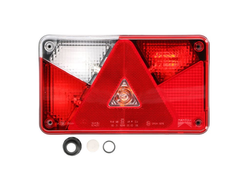 - Zadní světlo levé MULTIPOINT V (P21/5W/P21W/PY21W, 24V, s blinkrem, mlhovým světlem, couvacím brzdovým pozičním trojúhelníková odrazka, konektor: PE, průchodkou