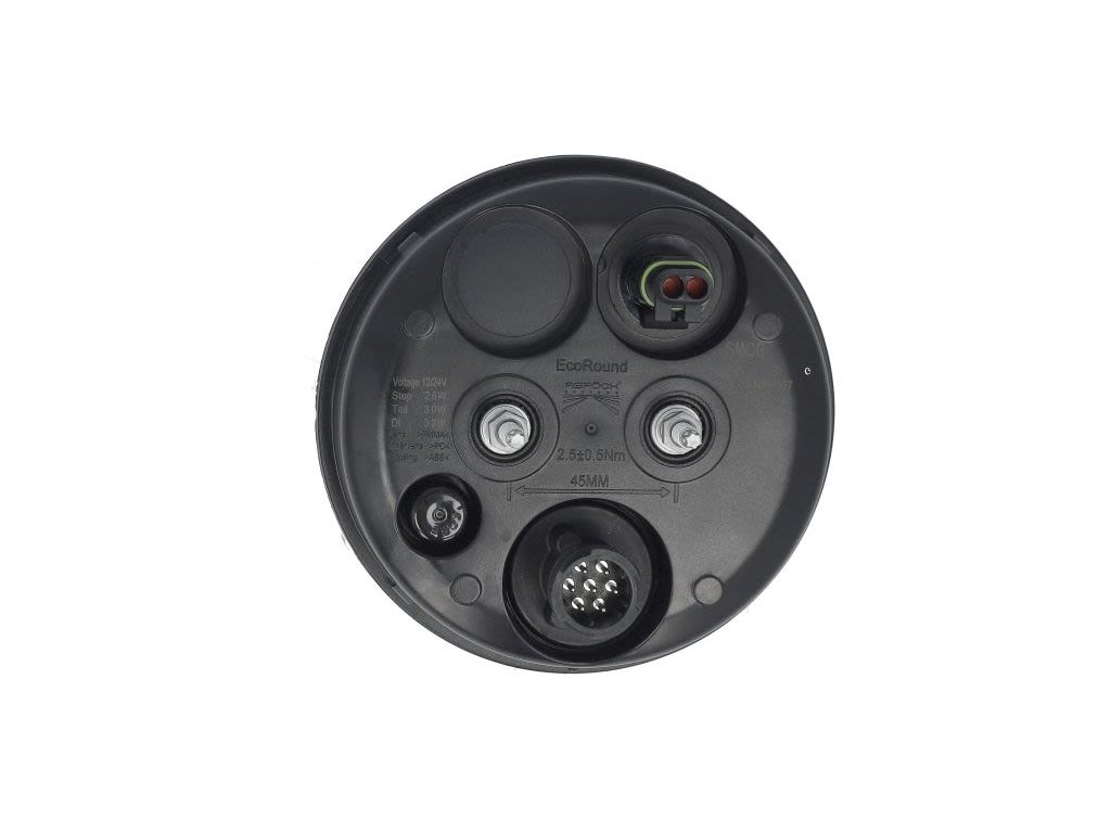 - Zadní světlo levé/pravé ECOROUND (LED, 12/24 V, s blinkrem, brzdovým světlem, poziční světlo, bez reflektoru, šrouby, konektor: 2x SuperSeal 2PIN/AMP 7PIN)
