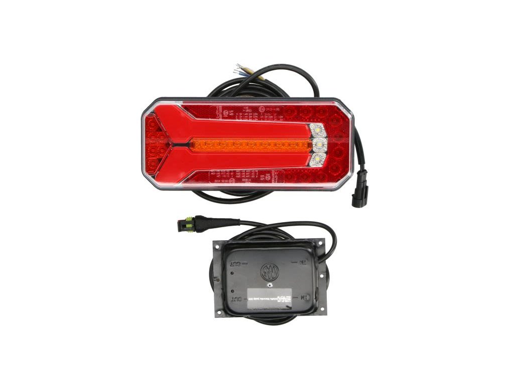 - Zadní světlo levé/pravé W150DD (LED, 24 V, s blinkrem, mlhovým světlem, couvacím brzdovým pozičním odrazkou, dynamickým ukazatelem, délka kabelu: 0,2 m,