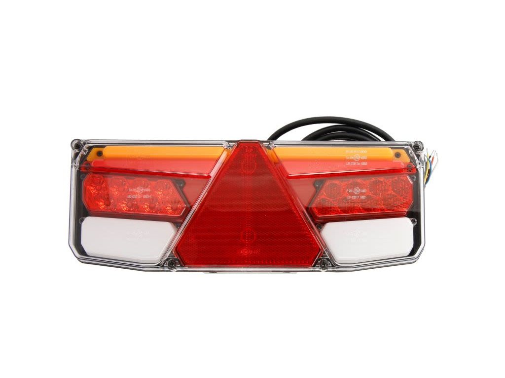 - Zadní levé světlo (LED, 12/24 V, s blinkrem, mlhovým světlem, se zpětným stop pozičním trojúhelníkovou odrazkou, dynamickým ukazatelem směru)