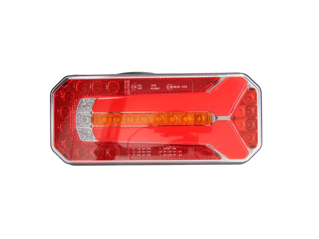 - Zadní levé/pravé svítilna W150DD (LED, 12/24V, s blinkrem, mlhovým světlem, brzdovým pozičním odrazkou, dynamickým ukazatelem směru, kabelovou průchodkou)