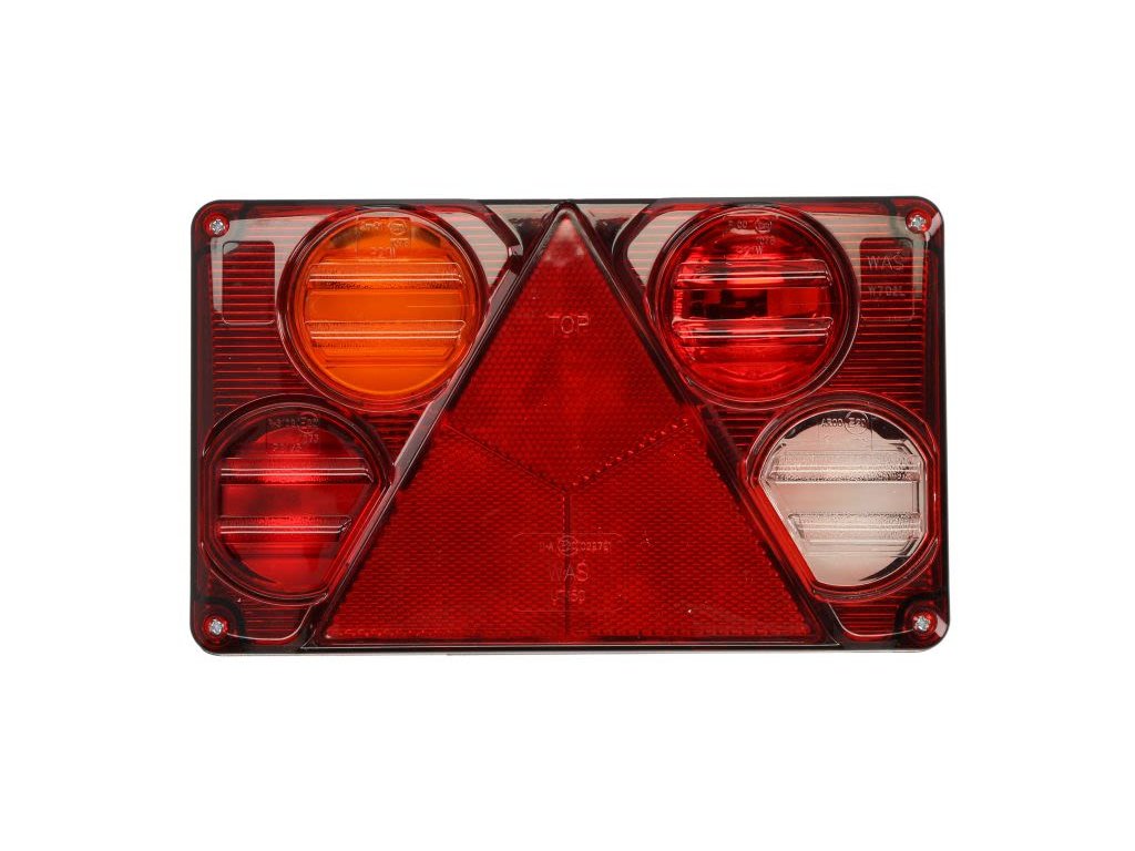- Zadní světlo levé (12/24 V, s blinkrem, mlhovým světlem, zpětným brzdovým pozičním trojúhelníkovou odrazkou, kabelovou průchodkou)