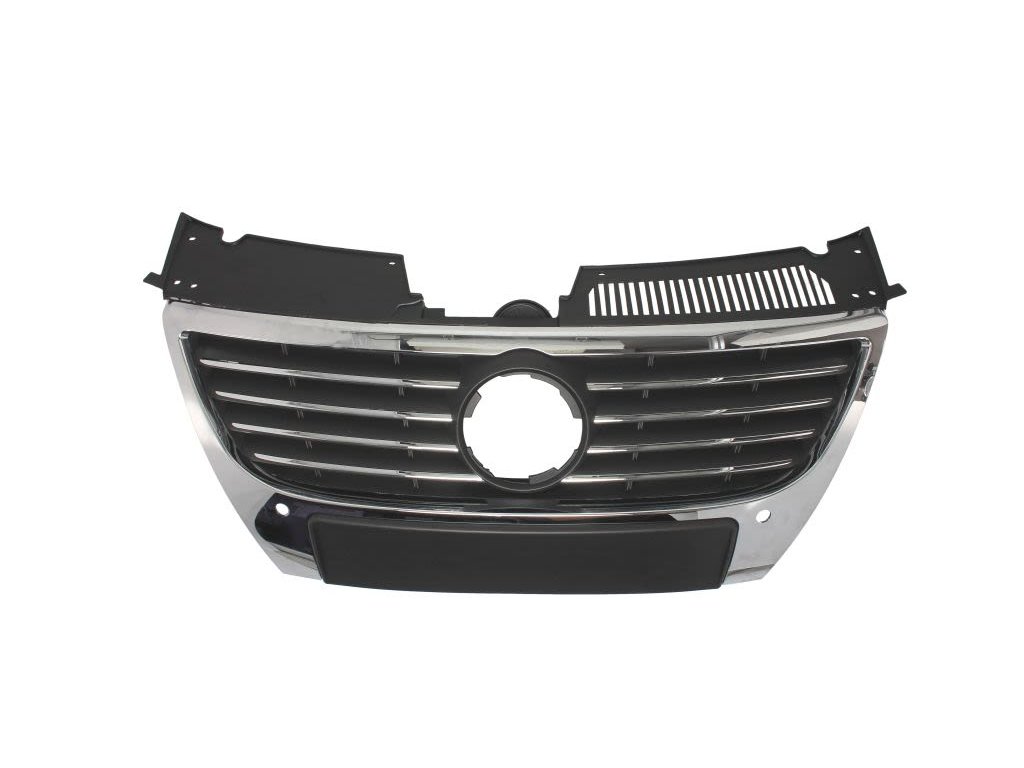 Přední maska Vložka (chromovaný velký emblém s otvory parkovací senzory, chrom/černá) VW Passat B6 03.2005–11.2010